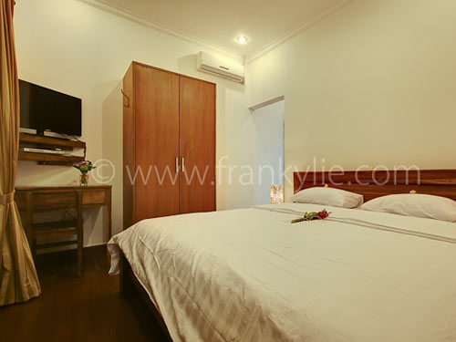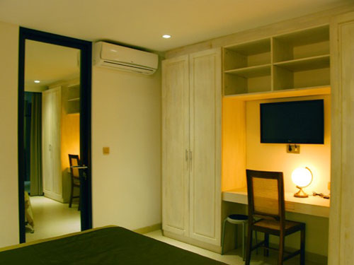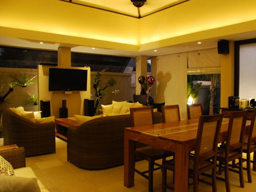 Fully furnished, complete open living area, Equipped kitchen, Hot water + shower / bathtub, Cable TV, DVD Player, Free high speed wireless Internet (so bring your laptop), daily maid, nice garden, and private swimming pool.
