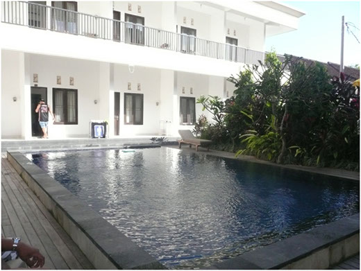 Unlike most other Hotels and Resorts Seminyak Point is owned and family operated by Bapak Nyoman and family (Balinese) . They will take great care of you and show you a personal experience. They only have 30 rooms and will know you on a first name bases. They have nice big rooms and bathrooms, Wi-Fi, Fat screen TV’s and every room as an outside smoking area. Nice swimming pool in the center for all to share and make friends. This is our home base for Bali Surfing Tours for our Surfer Package’s.